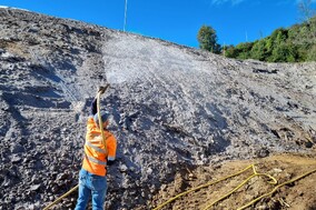 Laying of BioCoir Coconut / hessian matting over hydroseeding to reinforce erosion control